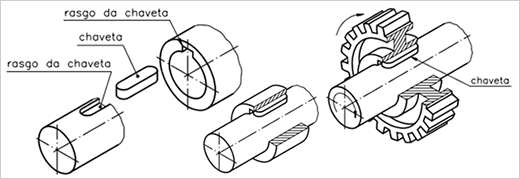 ou semicircular. A chaveta se interpõe numa cavidade de um eixo e de uma peça.